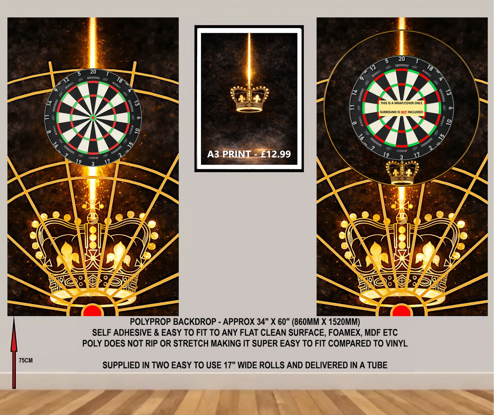 GOLD KING THEMED DARTS BACKDROP WALL GRAPHIC - POLYPROPYLENE - 34" x 60"
